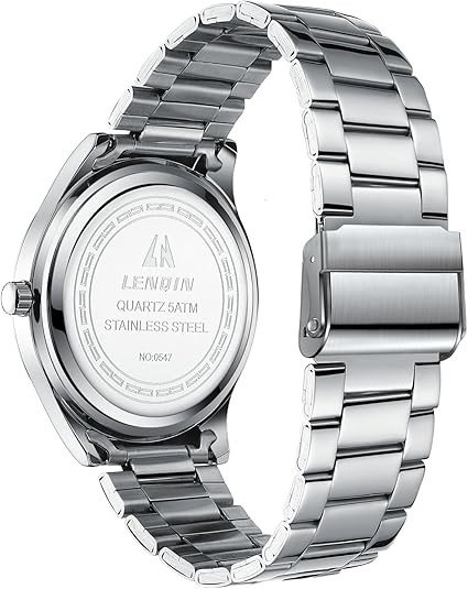 ⌚【 STAINLESS STEEL WATCHES FOR MEN】Elegant mens wrist watches comes with a soft and comfortable stainless steel case and strap, suitable for daily wear, non-oxidizing, easy to maintain. Foldover clasp with push button prevents accidental opening and falling, come with tool for adjustment different wrist sizes.