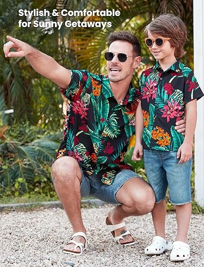 UNIQUE DESIGN: Easy Snap Closure, All-Over Cotton Liner, Elastic Waist for Better Fit, Adorable Ruffled Sleeves, Sweet Skirt Design for Baby Girls; Elegant Halter Neck Design, Button for Easy On & Off, Adjustable Waist for Better Fit and Antistatic Cotton Lining Halter Neck Dresses for Women and Girls; Matching Aloha Shirt Design and Front Button Closure for Easy Dressing for Men and Boys. Meet the fashion needs of the whole family!
